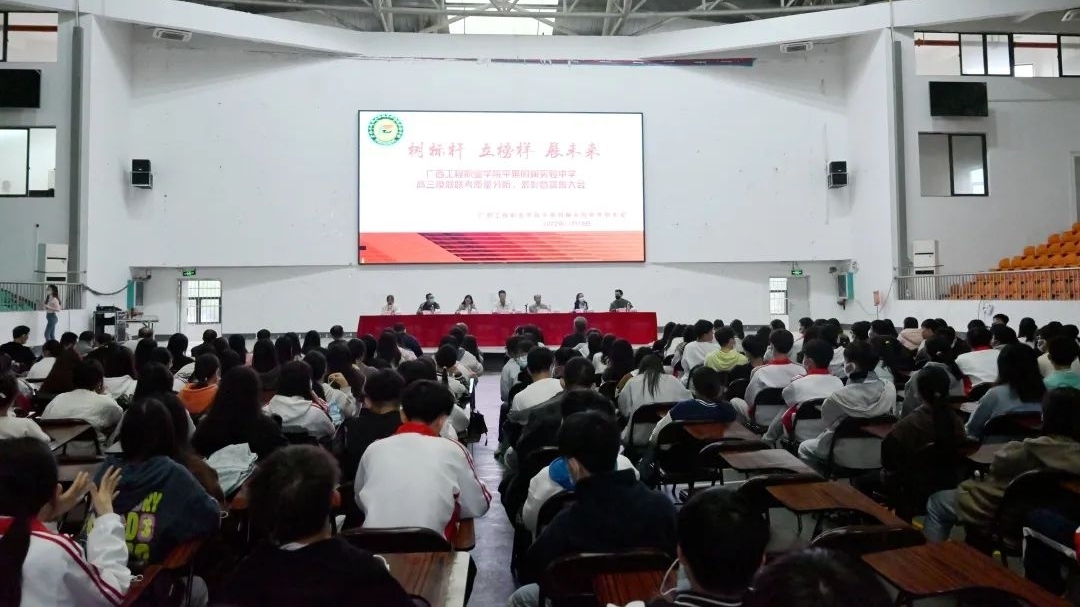 大会主要有四个议程:一是主持人介绍出席大会的领导和嘉宾;二是梁会珍副校长作联考质量分析并宣读表彰名单;三是颁奖仪式;四是周大义校长作总结讲话并带领宣誓。大会得到学校领导的高度重视,在百忙中抽出时间出席本次会议,他们分别是广西工程职业学院平果附属实验中学校长周大义、副校长梁会珍、学校办公室主任周娇洋、政教处主任潘翠萍、团委书记陈威、总务处主任黄启宝、教务处主任任莉菲以及我们高三的全体教师。
