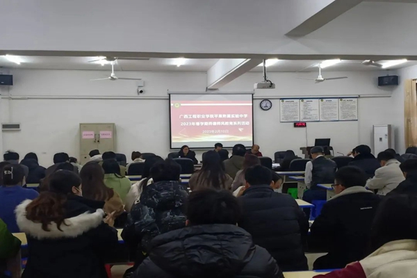 2023年是全面贯彻党的二十大精神的开局之年,为进一步贯彻党的教育方针,强化教师师德师风建设,增强全校教职工教书育人的责任感和使命感,广西工程职业学院平果附属实验中学于2023年春季学期开学初开展了为期两个月的师德师风专题培训系列活动。